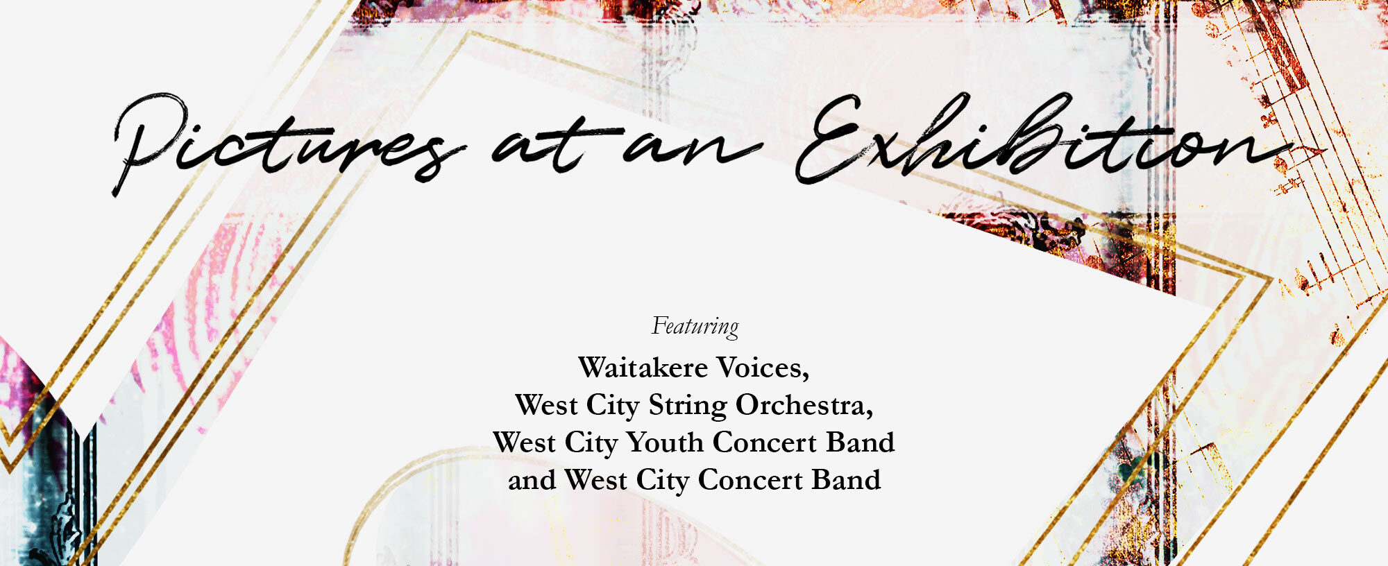 The West City Concert Band, Youth Concert Band, String Orchestra and Waitakere Voices choir present “Pictures at an Exhibition”! This concert will be at the Bruce Ritchie Performing Arts Centre, Massey High School.